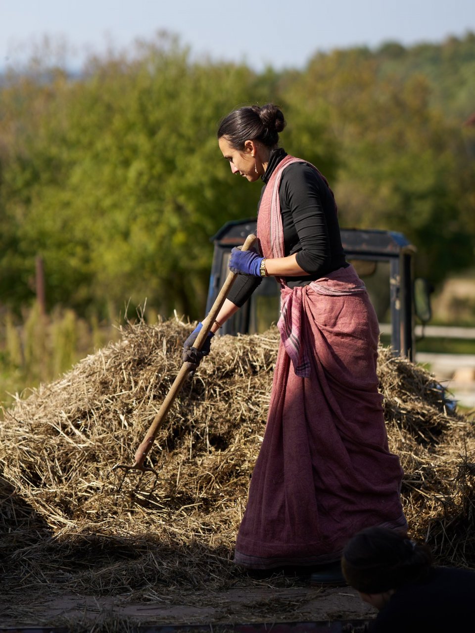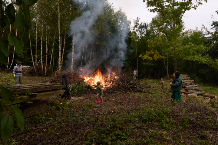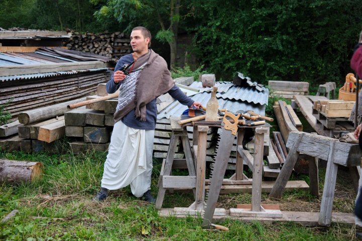 Hlavní činností se stalo štípání dřeva. Na farmě nás navštívil Smita Krišna Maharádž, který nám dal praktické rady pro soběstačný život.