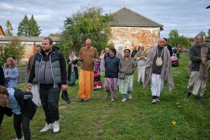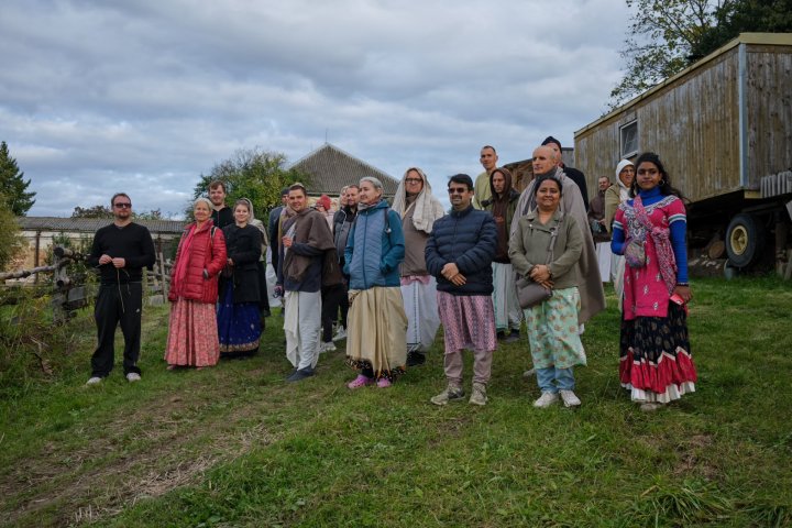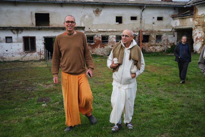 Nečekaně nás přijel navštívit HH Bhakti Rághava Mahárádž, který zasvětil svůj život rozvoji a ustanovování varnášramy v ISKCONu. První návštěva Mahárádže na farmě byla pro všechny velkou inspirací.