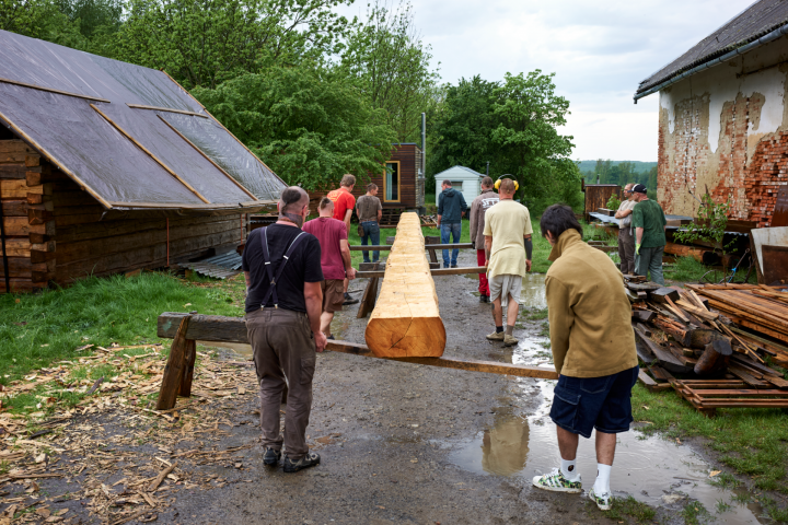 Hlavní činností se stalo štípání dřeva. Na farmě nás navštívil Smita Krišna Maharádž, který nám dal praktické rady pro soběstačný život.