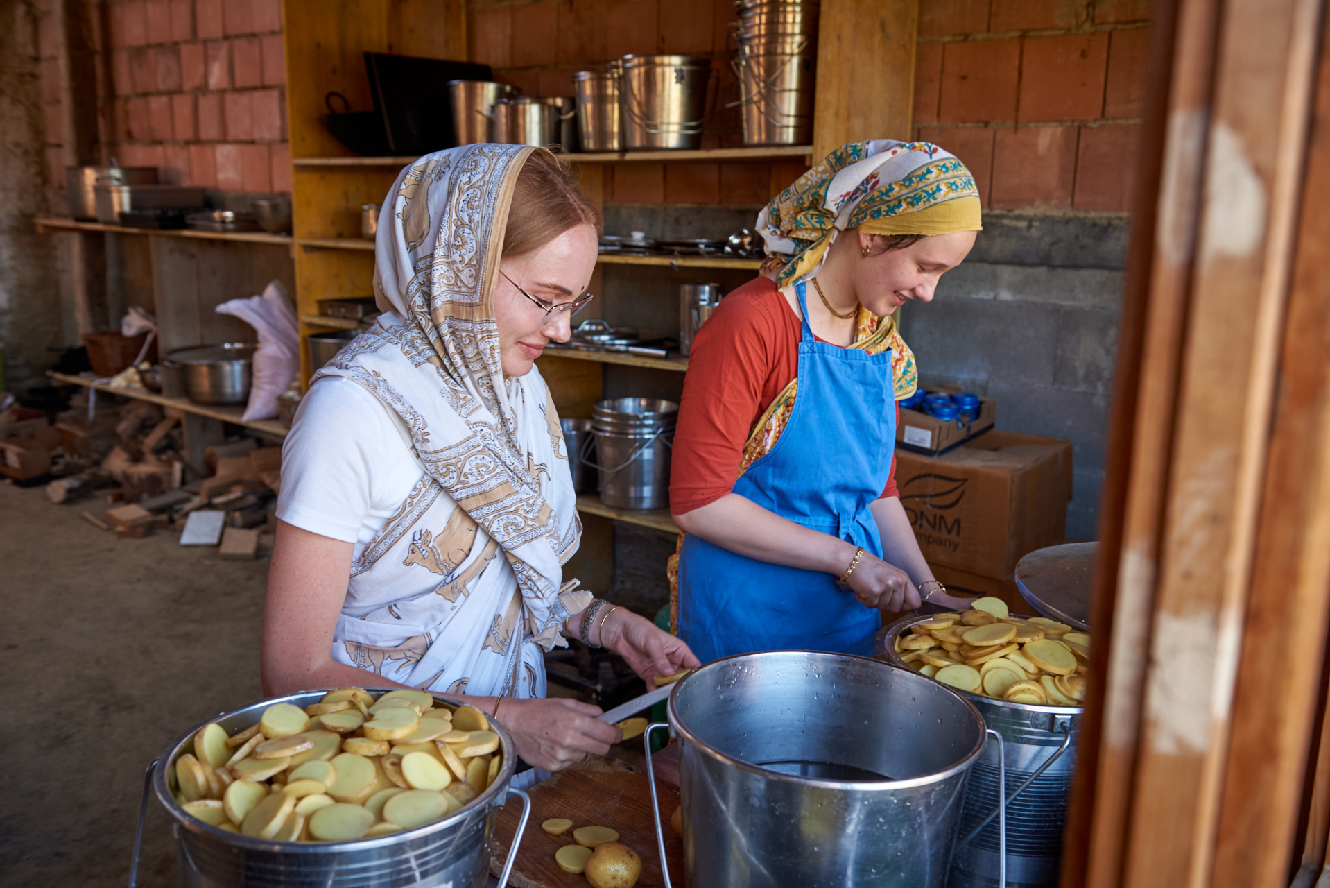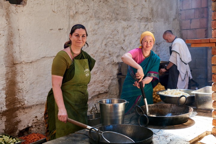 During the summer days we harvest, process grain, and enjoy the arid days in the company of devotees.
