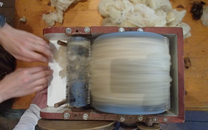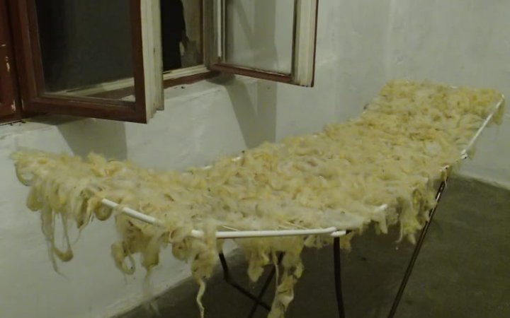 Potom, co je vlna vyždímaná, následuje sušení. Je důležité ji dobře rozprostřít, urychlíme tak schnutí a vlna se bude i snadněji česat. Přibližně po pěti hodinách by měl být materiál připravený k dalšímu zpracování. Ideální je vlnu sušit na slunci, ale jelikož jsme s ní pracovali na začátku podzimu, použili jsme kamna.