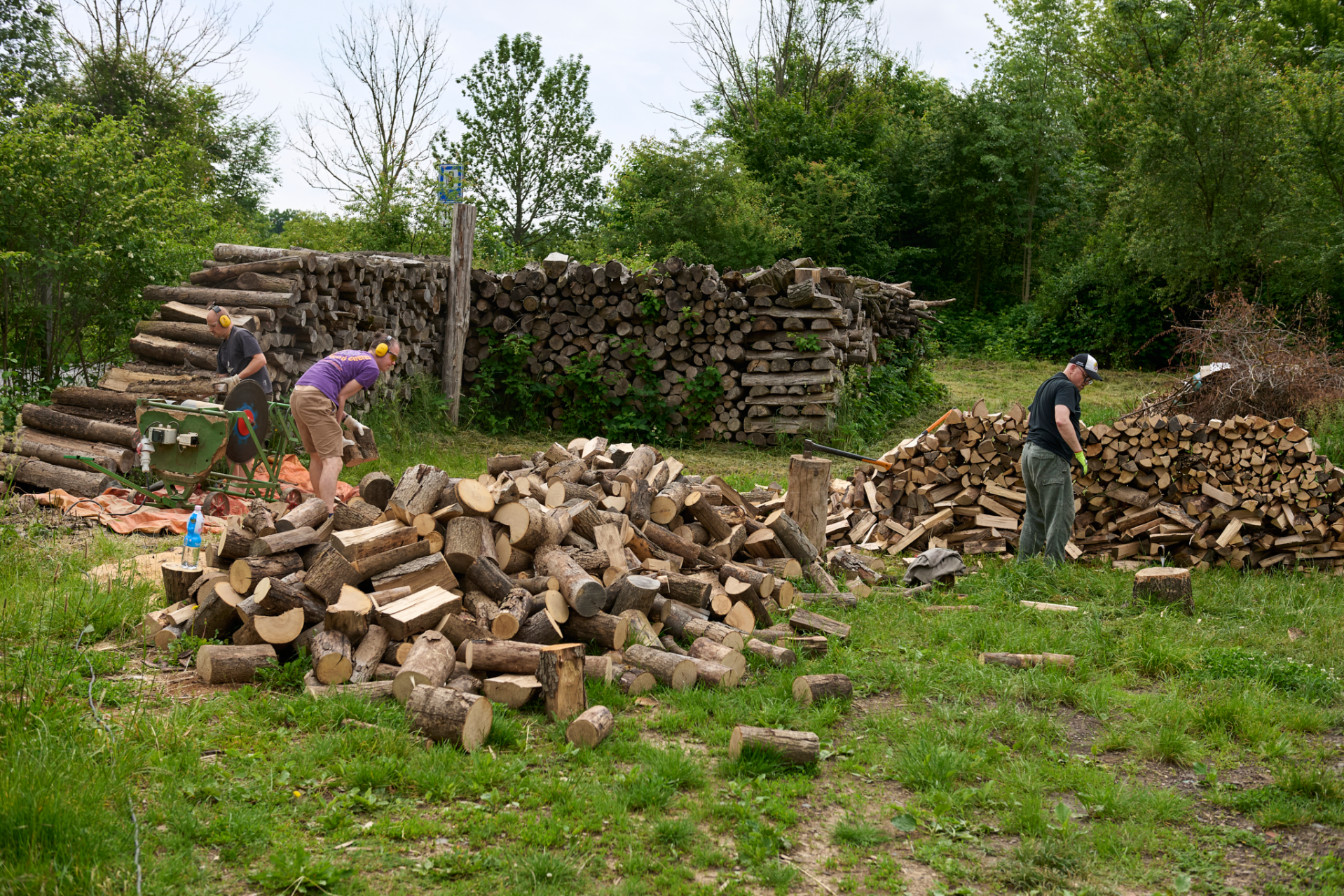 Hlavní činností se stalo štípání dřeva. Na farmě nás navštívil Smita Krišna Maharádž, který nám dal praktické rady pro soběstačný život.
