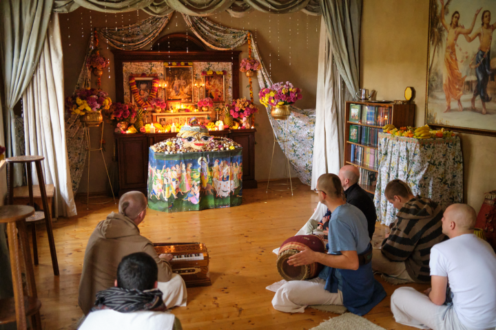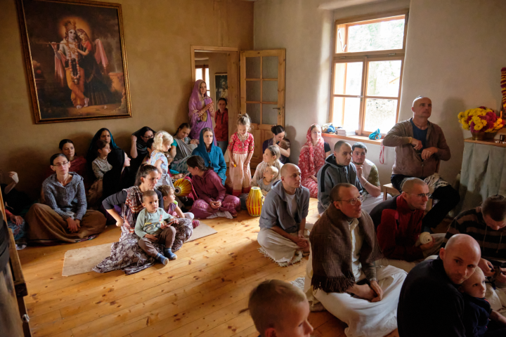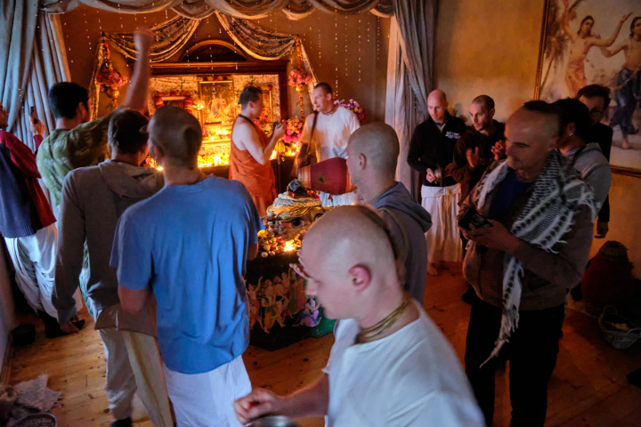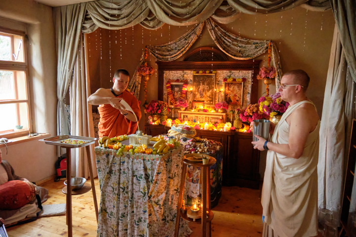 Fotografie z oslav Šrí Kršna Džanmáštamí a Vjása-půdži Šríly Prabhupády 2019