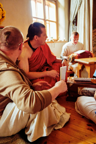 Nečekaně nás přijel navštívit HH Bhakti Rághava Mahárádž, který zasvětil svůj život rozvoji a ustanovování varnášramy v ISKCONu. První návštěva Mahárádže na farmě byla pro všechny velkou inspirací.