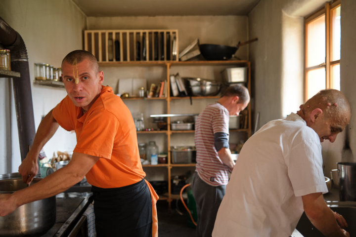 Hlavní činností se stalo štípání dřeva. Na farmě nás navštívil Smita Krišna Maharádž, který nám dal praktické rady pro soběstačný život.
