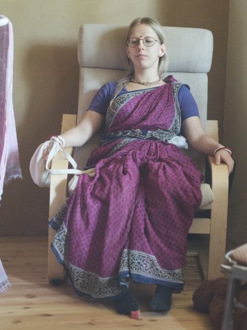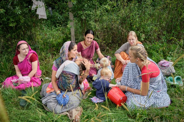 Letošní léto se nám podařilo opět o něco více používat volskou sílu. Náš Dévadatta se kromě 3 týdenní účasti na Padayátře učil obracet seno a tahat dříví z lesa. Brzy už zkusí i lehké orání. Společně jsme sklidili a vymlátili na jaře vysetou pšenici. Bohužel letos opravdu hodně útočili bodláky, ale i tak nějaké zásoby máme. Již po druhé jsme zkusili vypěstovat len, který se bude dále zpracovávat na přízi a následné tkaní. Na Gókule bydlí zase o pár oddaných více a zvláště, co se týče dětí, tak je u nás velmi živo.