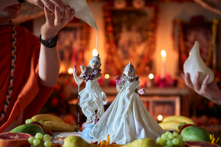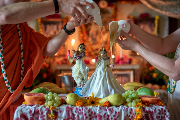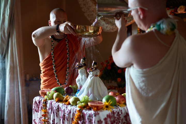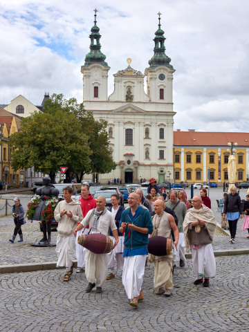 Fotografie z oslav Šrí Kršna Džanmáštamí a Vjása-půdži Šríly Prabhupády 2019