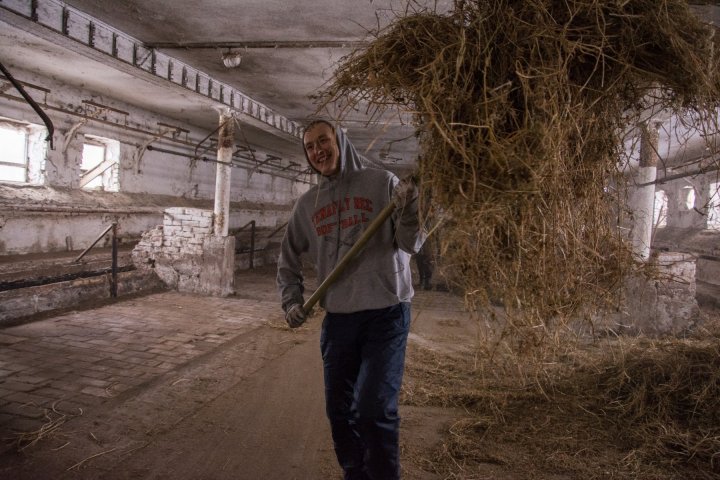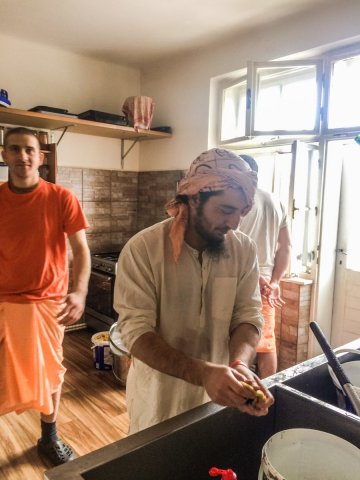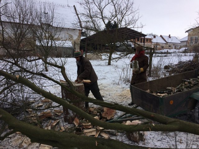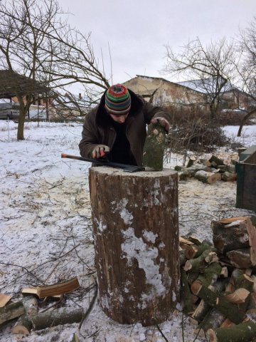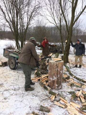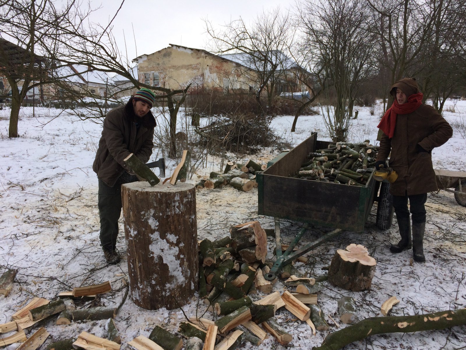 Hlavní činností se stalo štípání dřeva. Na farmě nás navštívil Smita Krišna Maharádž, který nám dal praktické rady pro soběstačný život.